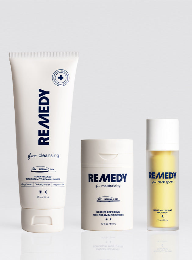 Remedy is guided by the medically-inspired principle of Do No Harm™. We exclude common contact allergens and irritants in our formulas to deliver effective dermatologist developed solutions.