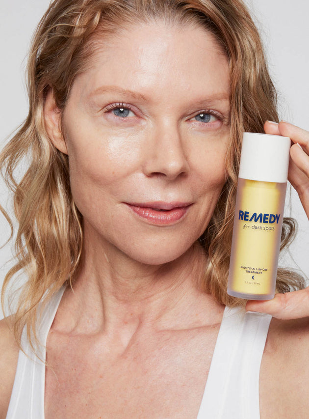 An all-in-one nightly remedy that stacks the impact of multiple products in a single targeted treatment to help fade existing dark spots, prevent future discoloration, and promote even skin tone.