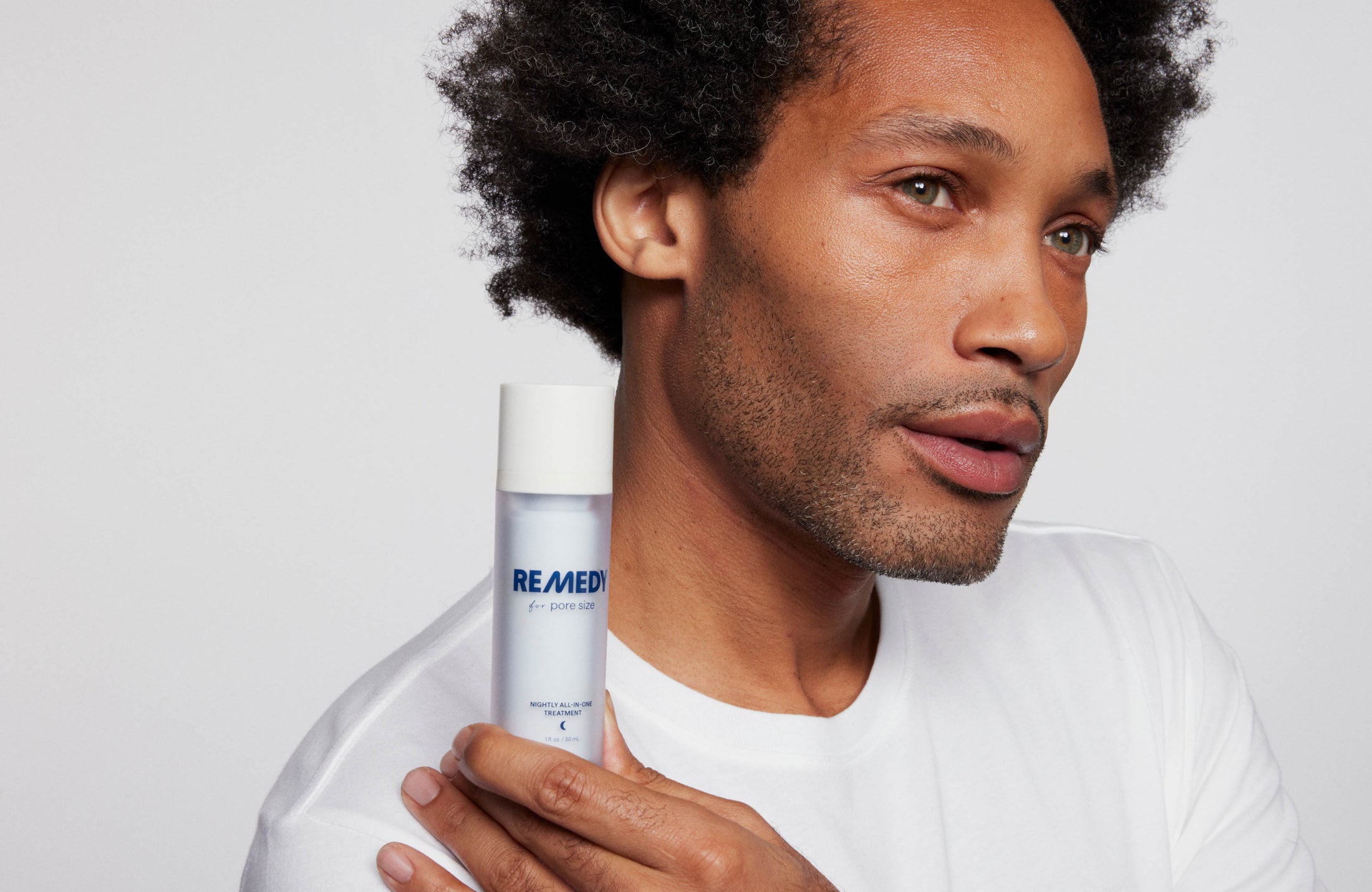 - Apply a pea-size amount of Remedy for Pore Size to your entire face.