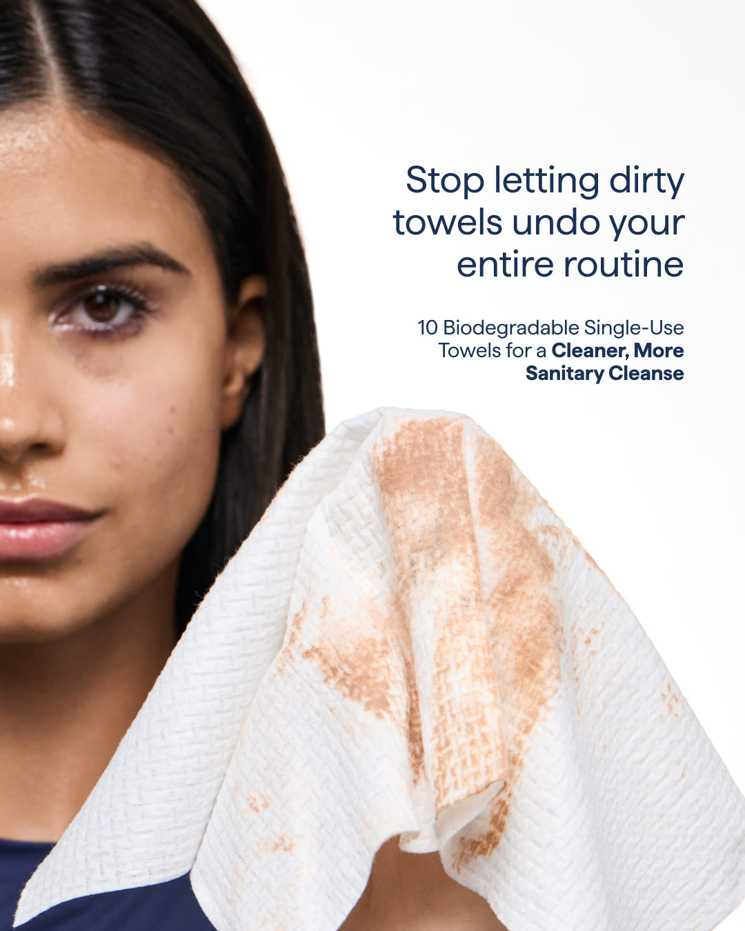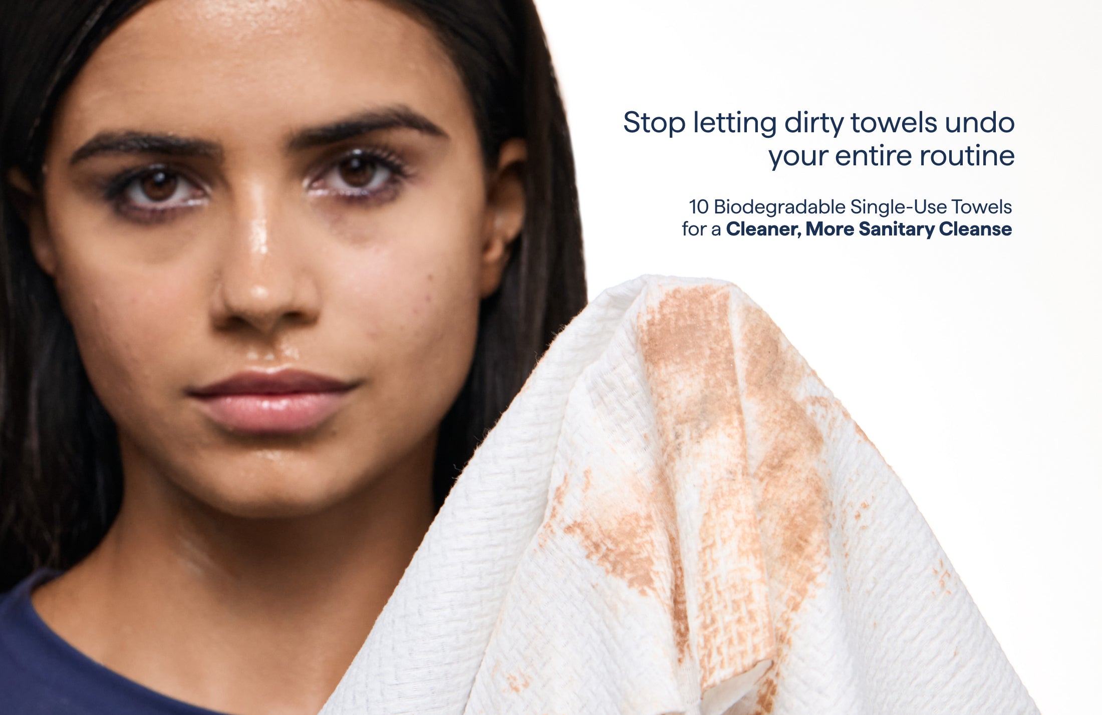 10 Ultra-soft, single-use face towels designed for hygienic skincare. Made from 100% biodegradable viscose fibers, these dermatologist-approved towels eliminate bacteria transfer to protect your skin barrier.