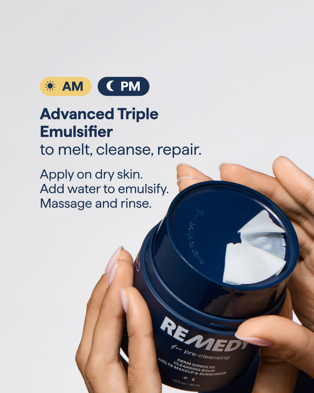 3. For a deeper cleanse, follow with Remedy for Cleansing Cream or Gel Cleanser as the second step.