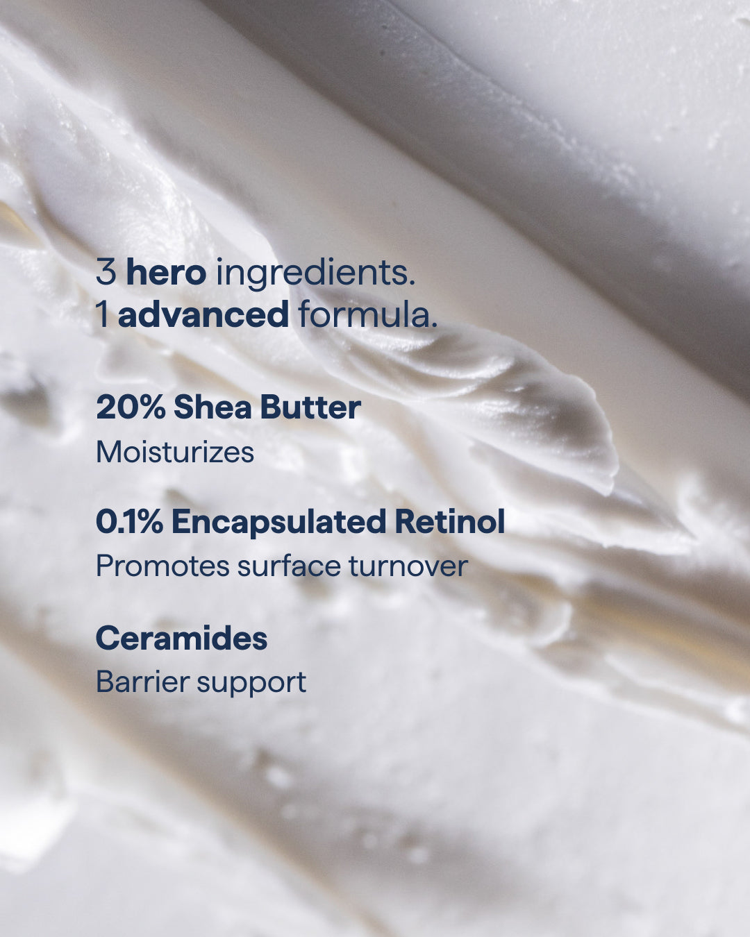 Water (Aqua), Butyrospermum Parkii (Shea)Butter, Glyceryl Stearate SE, Glycerin, Propanediol, Cetearyl Olivate, C15-19Alkane, Cetearyl Alcohol, Retinol, Hydroxyethyl Acrylate/SodiumAcryloyldimethyl Taurate Copolymer, Squalane, Coco-Caprylate, Butylene Glycol,Pentylene Glycol, Glycine Soja (Soybean) Oil, Glycolic Acid, Lactic Acid,Acetyl Heptapeptide-4, Ceramide NP, Ceramide AP, Ceramide EOP, Glycine Soja(Soybean) Extract, Curcuma Longa (Turmeric) Root Extract, Cucumis Sativus(Cucumber) Fruit Extract, Sorbitan Olivate, Sodium Stearoyl Glutamate, AloeBarbadensis Leaf Juice, Avena Sativa (Oat) Kernel Flour, Phytosphingosine,Cholesterol, Sodium Lauroyl Lactylate, Carbomer, Xanthan Gum, Acacia SenegalGum, Propylene Glycol Alginate, Cetyl Lactate, Tocopherol, Caprylyl Glycol,Phenethyl Alcohol, Leuconostoc/Radish Root Ferment Filtrate, Phenoxyethanol,Ethylhexylglycerin, Sodium Hydroxide, Citric Acid
