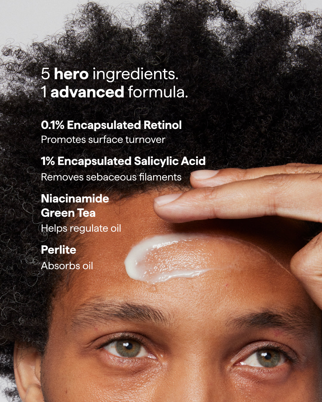 Vitamin A derivative that promotes surface turnover, regulates oil, and helps unclog and minimize pores¹