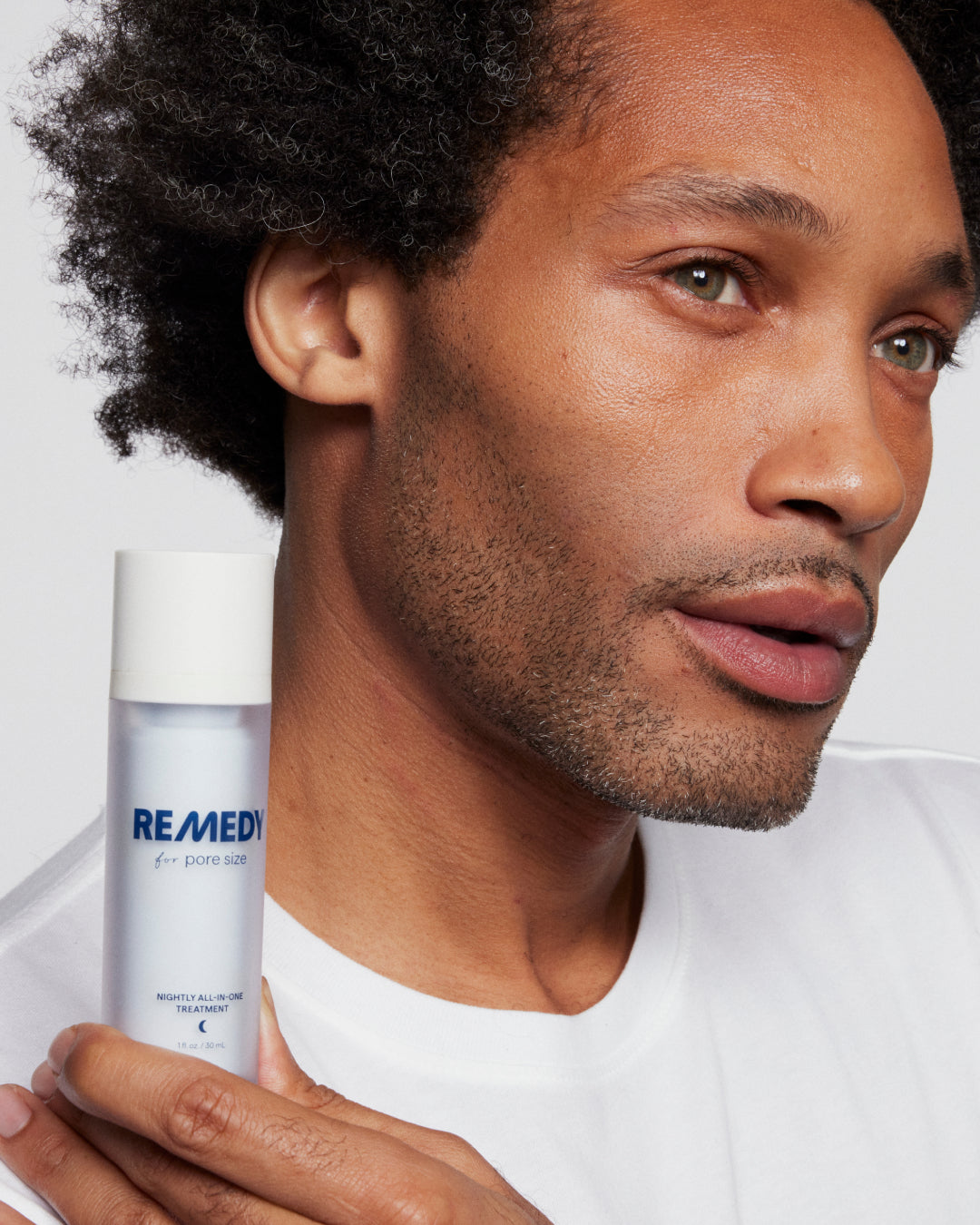 - Apply a pea-size amount of Remedy for Pore Size to your entire face.